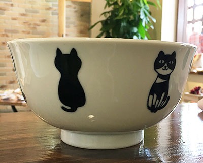青猫柄の波佐見焼の手付き小鉢とレンジパック
